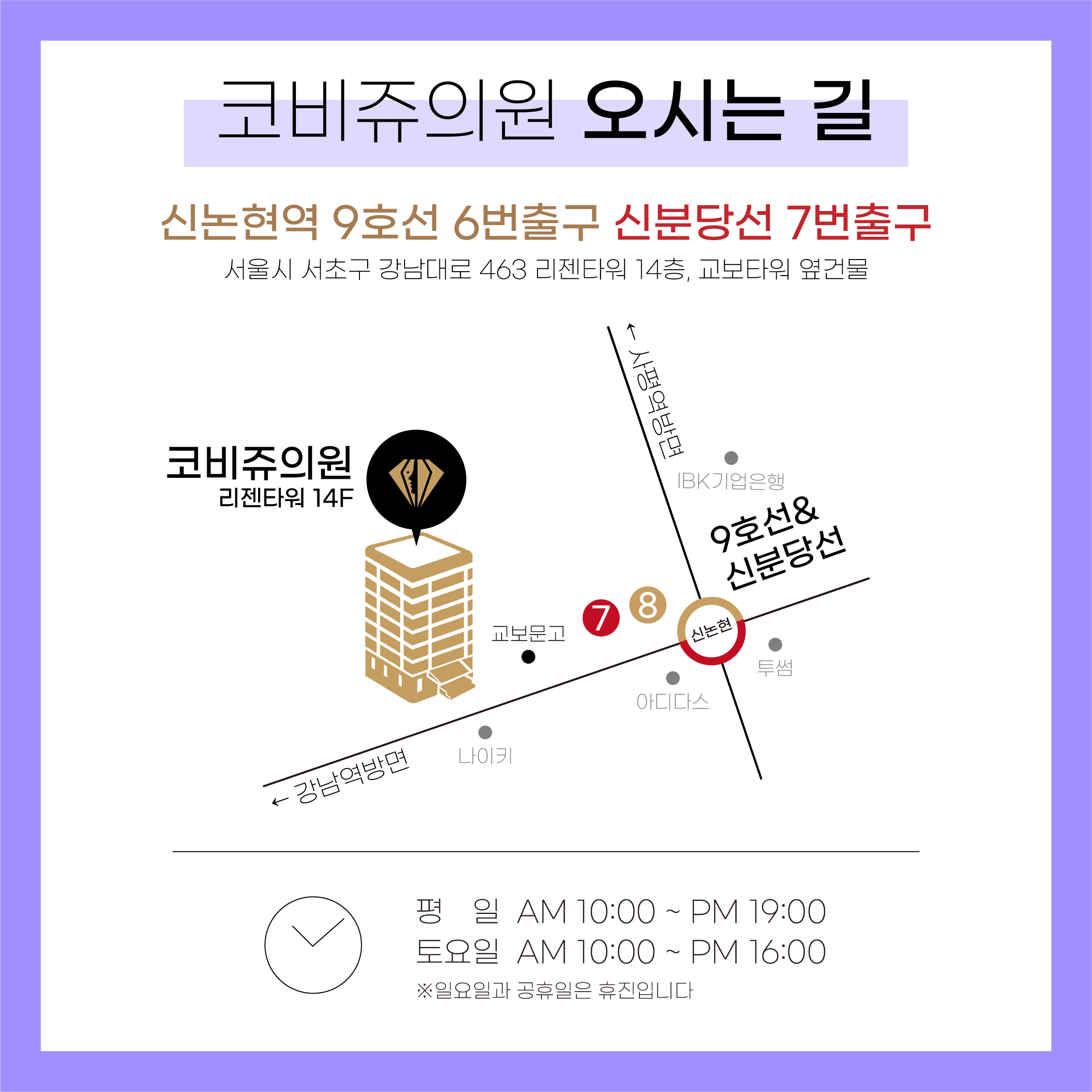 (서울특별시 서초구 강남대로 463(리젠메디컬타워) 14층, 코비쥬의원)
